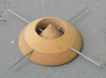 diameter and suspending a conical shaped wooden (or other solid material) plug